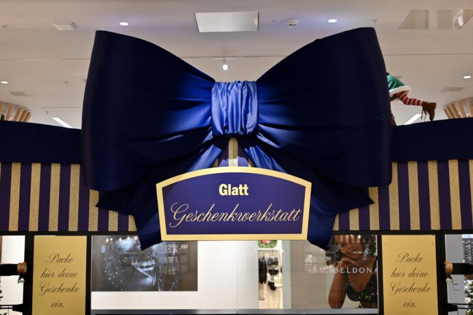 In der Geschenkwerkstatt können Kunden Weihnachtsgeschenke, die im Glatt gekauft wurden selber verpacken.